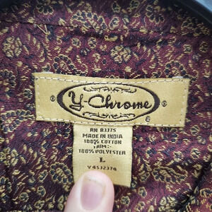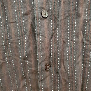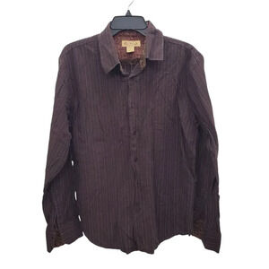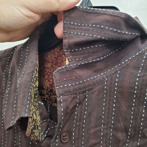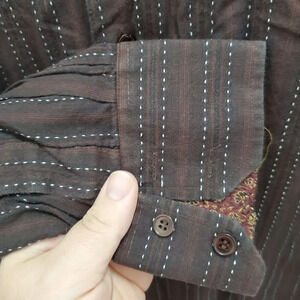 Y-Chrome Men's Vintage Brown Dashed Stripe Jacquard Flip Cuff Button Up Shirt L