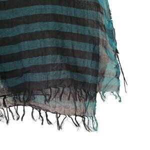 Y&D XL Cotton Blend Scarf Wrap Oblong Teal Black Stripe 2 Sided 34 X 80 in NWT