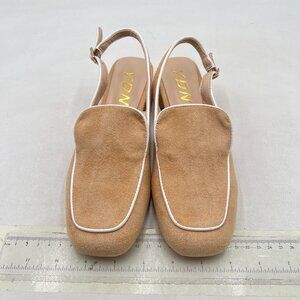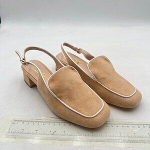 YDN Beige Square Toe Block Low Heels Slingback Formal Loafer Dressy Pump