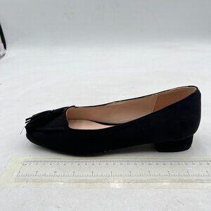YDN Black Block Low Heel Loafer Square Toe Tassel Fringe Pump Slip On Dress Shoe