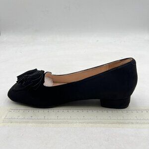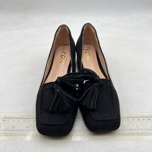 YDN Black Block Low Heel Loafers Square Toe Tassel Fringed Pump Slip On Shoe