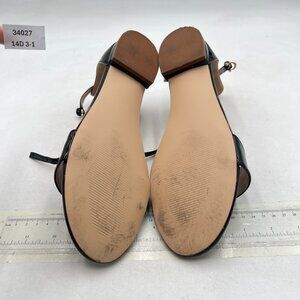 YDN Black Block Low Heel Sandals Open Toe Ankle Strap Patent Comfortable Shoes
