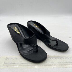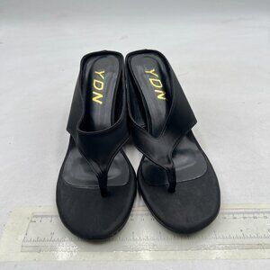 YDN Black Comfy Open Toe Flip Flops High Wedge Heels Thong Sandals Dressy Shoes