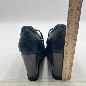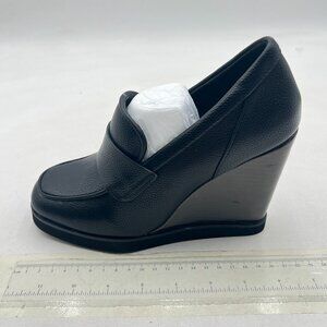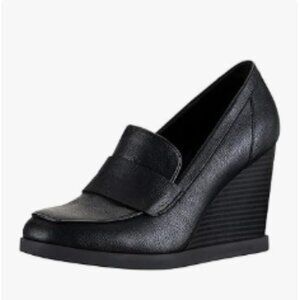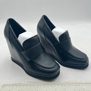YDN Black Dressy Pump Square Closed Toe Slip On Loafers Wedges High Heeled Shoes