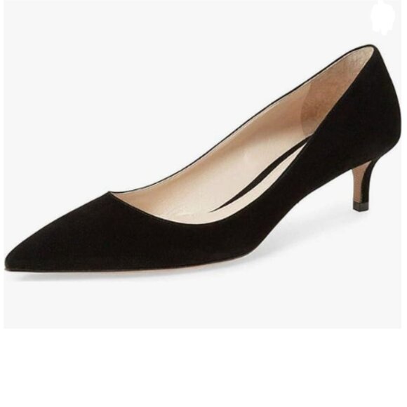 YDN Black Kitten Heeled Pumps Pointed Toe Dress Shoes for Office Lady Soft Suede