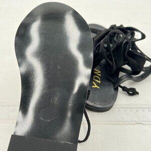 YDN Black Knee High Lace up Flats Fringe Low Heel Gladiator Strap Sandals Shoe