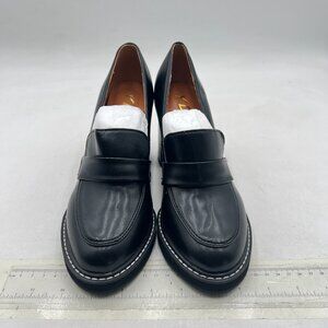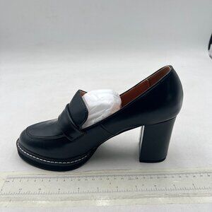 YDN Black Penny Loafers Round Closed Toe Platform Chunky High Heel Slip On Pumps