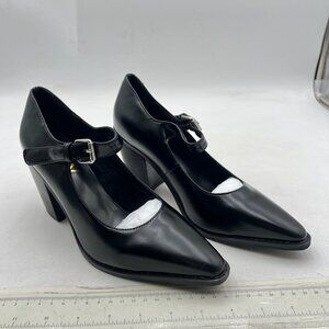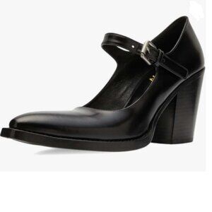 YDN Black Platform Pointed Toe Pumps Chunky High Heel Mary Janes Retro Prom Shoe