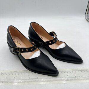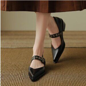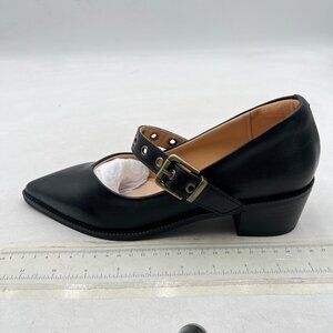 YDN Black Pointed Toe Mary Jane Chunky Heels Loafers Hollow Buckle Pump