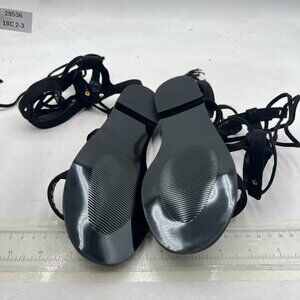 YDN Black Rivet Knee High Lace up Flats Fringe Low Heel Gladiator Strap Sandals