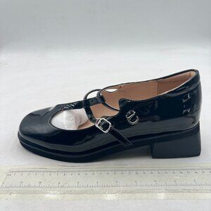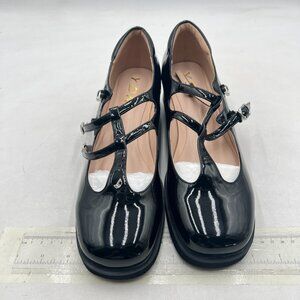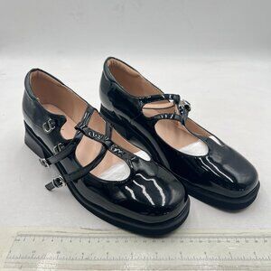 YDN Black Square Toe Platform Mary Jane Chunky Low Heel Pumps Double Straps Shoe