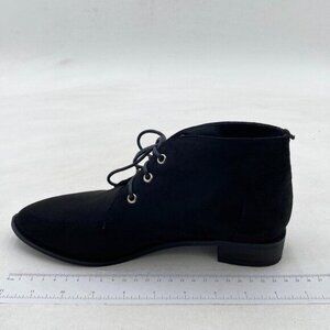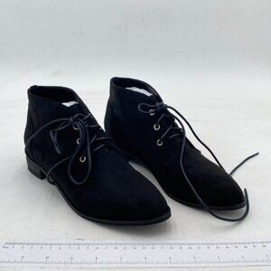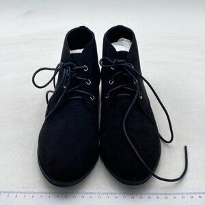 YDN Black Trendy Low Heel Pointed Toe Lace Up Chukka Ankle Boots Flats Fall Shoe