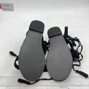 YDN Black Women Sexy Knee High Lace up Flats Fringe Low Heel Gladiator Strap Sandals Shoe