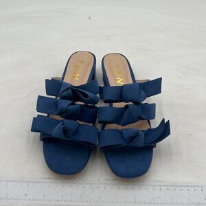 YDN Blue Adorable Open Toe Low Heel Slide Sandals Slip on Clogs Mules Block Shoe