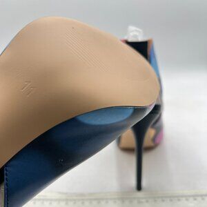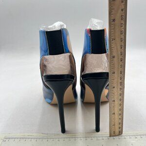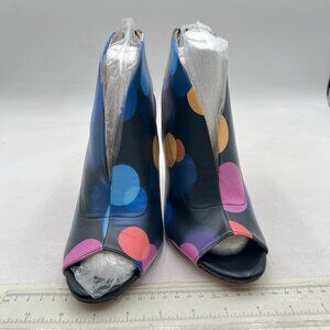 YDN Blue Circle Print Slingback Peep Toe Stiletto High Heel Sandals Ankle Boots