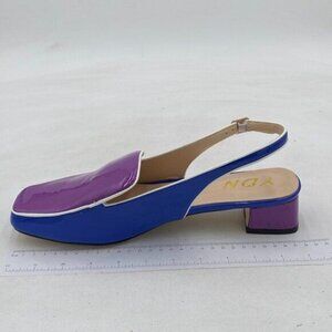 YDN Blue and Purple Closed Square Toe Block Low Heels Slingback Loafer Dressy Shoes