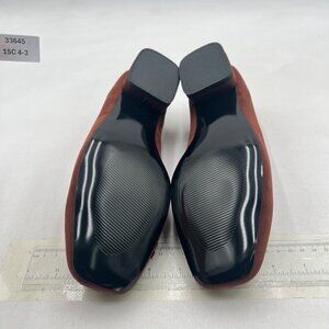 YDN Brown Block Low Heel Loafer Square Toe Tassel Fringe Pump Slip On Dress Shoe