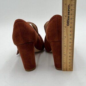 YDN Brown Chunky High Heels Square Toe Loafer Shoes Slip On Suede Office Pumps