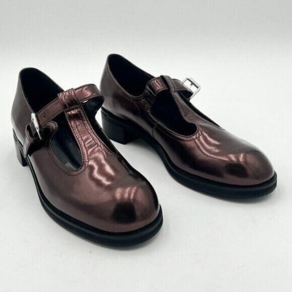 YDN Brown Dressy T Strap Pumps Square Closed Toe Mary Jane Block Low Heels Shoes