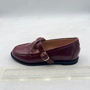 YDN Brown Low Heel Loafers Round Toe Chunky Heel Adjustable Buckled T-Strap Shoe