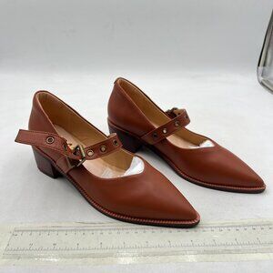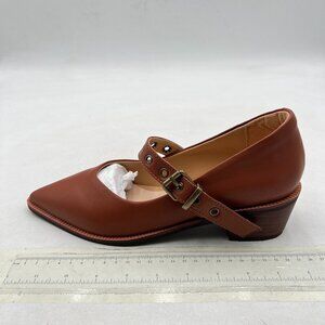 YDN Brown Pumps Pointed Toe Mary Jane Chunky Heels Loafers Hollow Buckle Shoes