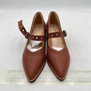 YDN Brown Pumps Pointed Toe Mary Jane Chunky Heels Loafers Hollow Buckle Shoes Party Shopping Evening