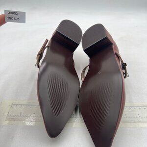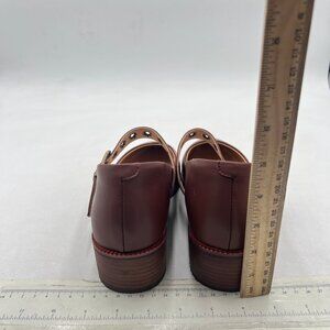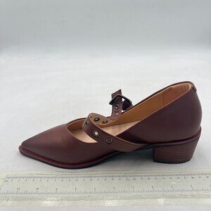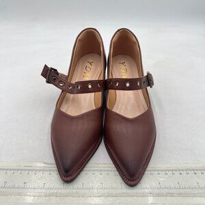 YDN Brown Pumps Pointed Toe Mary Jane Chunky Heels Loafers Hollow Buckle Shoes
