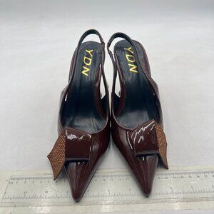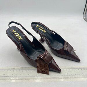 YDN Brown Studded Pumps Pointed Toe Slingback Chunky Heels Slip On Shoes Party
