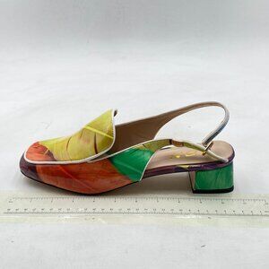 YDN Colorful-feather Square Toe Block Low Heels Slingback Formal Dressy Pump