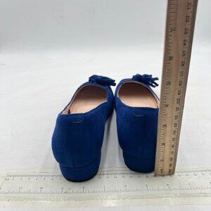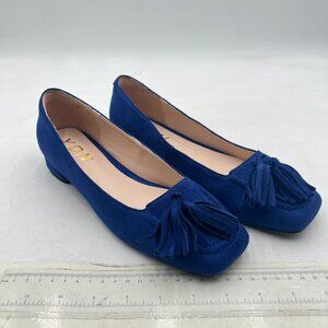 YDN Dark Blue Block Low Heel Loafer Square Toe Tassel Fringe Pump Slip On Shoes