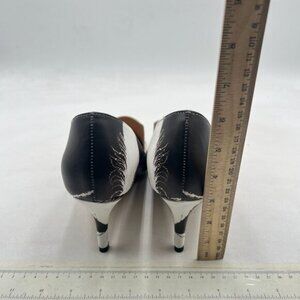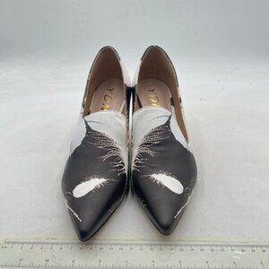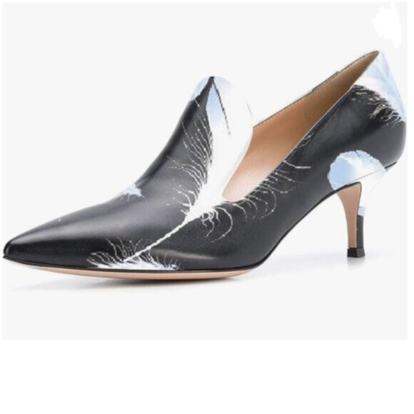 YDN Feather White Mid Heels Slip on Loafer Pumps Pointy Toe Slide Prom Shoes