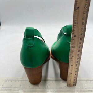 YDN Green Block Heel Pumps Round Toe Low Stacked Heels Ankle Strap Daily Shoes