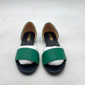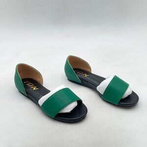 YDN Green Comfy Peep Toe D'Orsay Casual Flat Sandals Slip on Party Walking Shoes