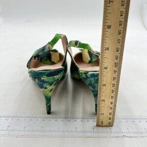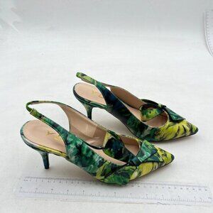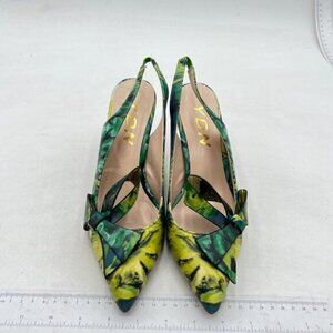 YDN Green Painting Stiletto Heel Pumps Bow Pointed Toe Slingback Slip on Sandals