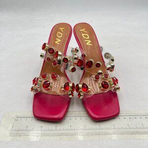 YDN Hot Pink Studded Mules Colorful Rhinestone Slippers Slip On Sandals