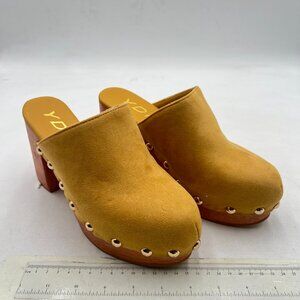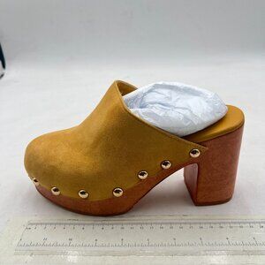 YDN Khaki Platform Slip On Clogs Mules Cork High Heel Round Toe Rivet Sandals