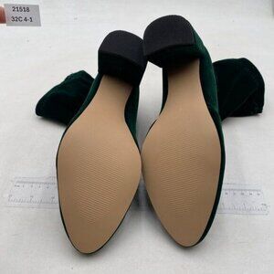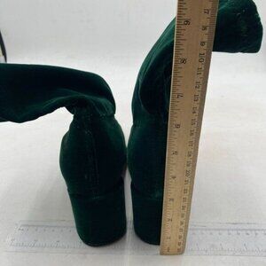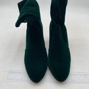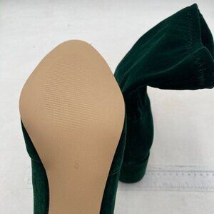 YDN Lake Green Pointed Toe Chunky High Heel Mid Calf Boots Pull On Dress Shoes