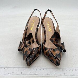YDN Leopard Women Stiletto Mid Heel Pumps Bow Pointed Toe Slingback