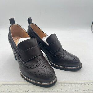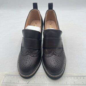YDN Light Brown Chunky High Heels Round Toe Oxford Dress Pump