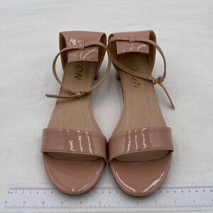 YDN Nude Block Low Heel Sandals Open Toe Ankle Strap Patent Comfortable Shoes