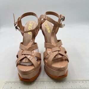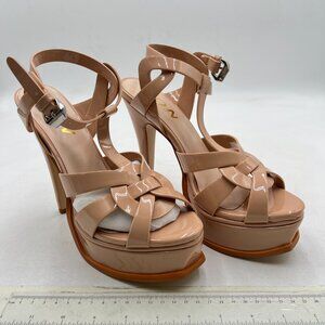 YDN Nude Strappy High Heeled Platform Sandals Peep Toe T-strap Ankle Strap Shoes