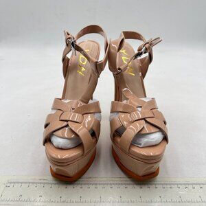 YDN Nude Strappy Platform Sandal Peep Toe Stiletto Heel T-strap Ankle Strap Shoe