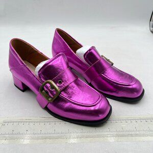 YDN Purple Square Toe Loafers Slip on Block Low Heel Pumps Buckle Fashion Shoes