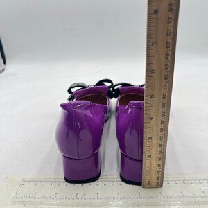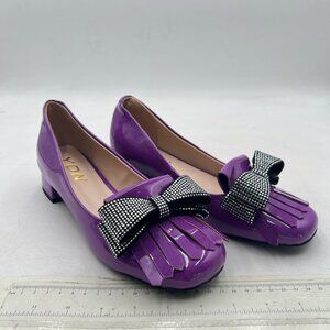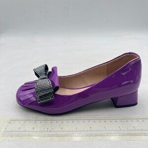 YDN Purple Squared Toe Tassel Pumps Rhinestone Bow Chunky Low Heel Slip On Shoe
