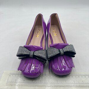 YDN Purple Squared Toe Tassel Pumps Rhinestone Bow Chunky Low Heel Slip On Comfy Dressy Date Office Shoe