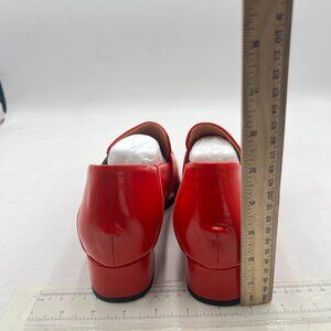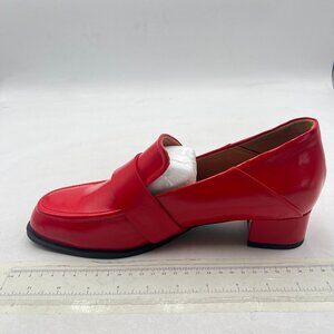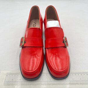 YDN Red Square Toe Heeled Loafers Slip on Block Low Heel Pumps Buckle Shoes