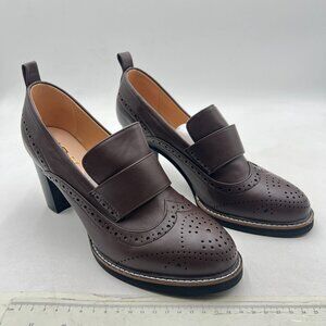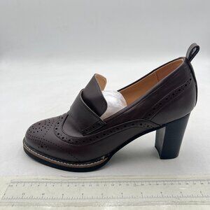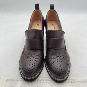 YDN Saddle Brown Chunky High Heels Round Toe Oxford Loafer Dress Shoe