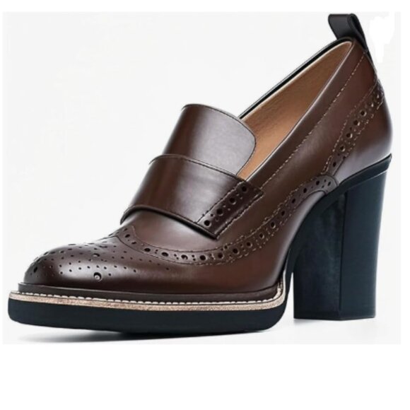 YDN Saddle Brown Chunky High Heels Round Toe Oxford Loafer Dress Shoe