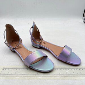 YDN Silver Block Low Heel Sandals Open Toe Ankle Strap Patent Walking Dress Flat