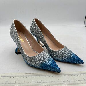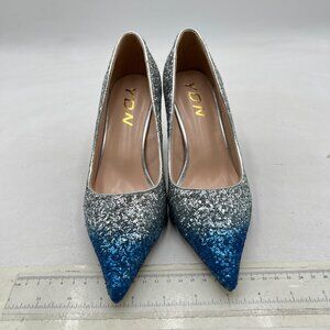 YDN Silver Blue Pointed Toe Slip on Pumps Special High Heel Shoe for Party